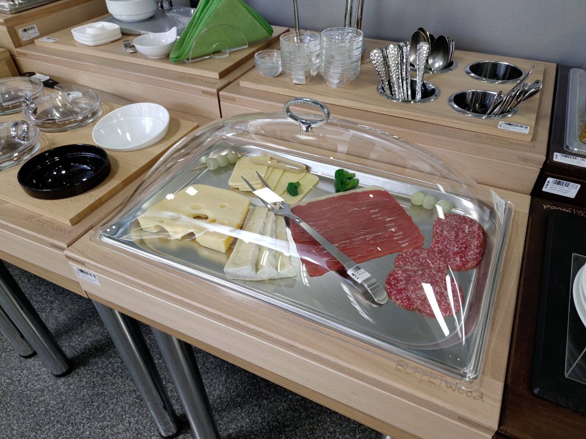 LxBxH in cm: 53x32,5x19 1/1 GN. Acryl, mit verchromtem Griff. Lieferung ohne Tablett.