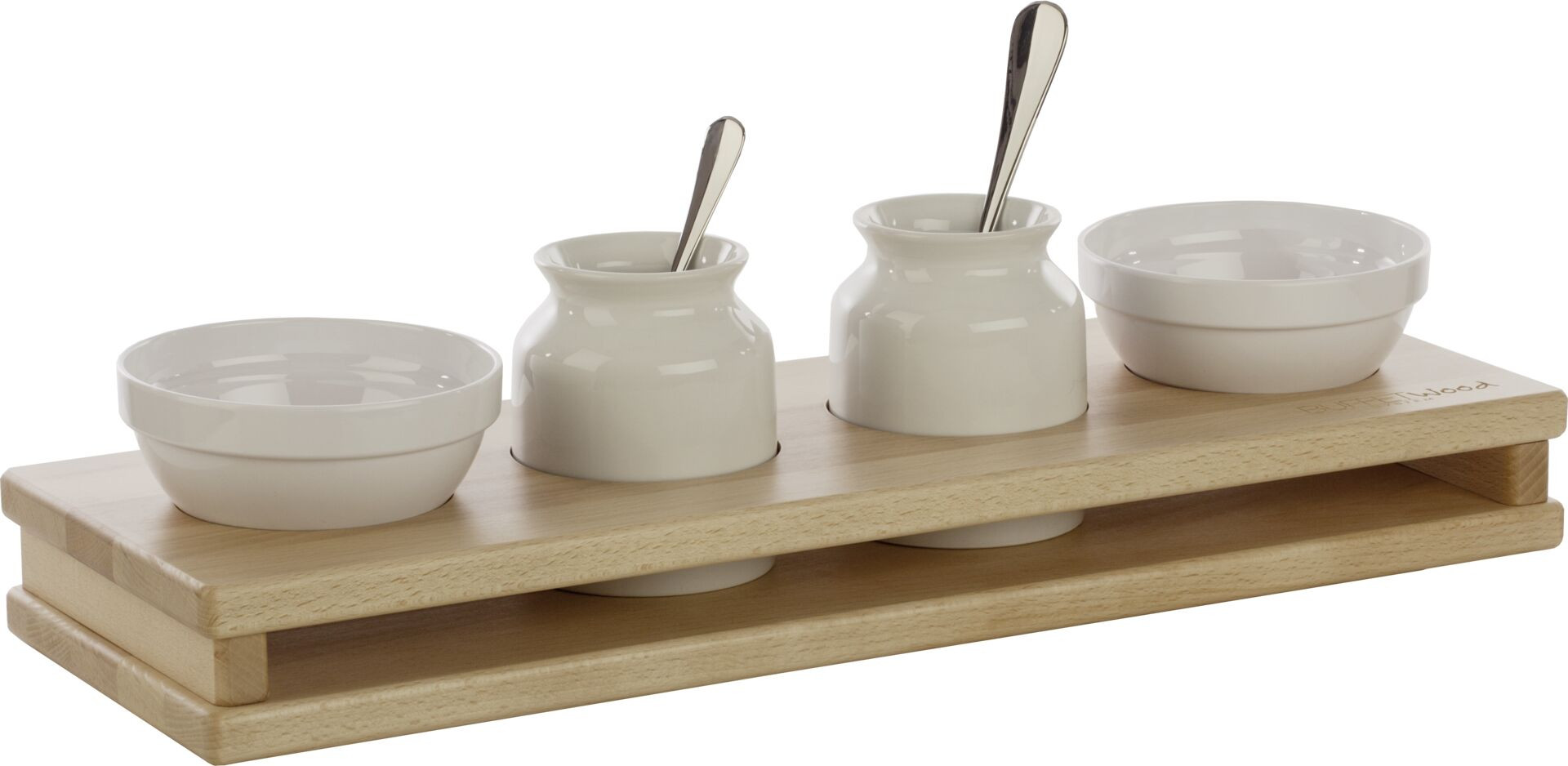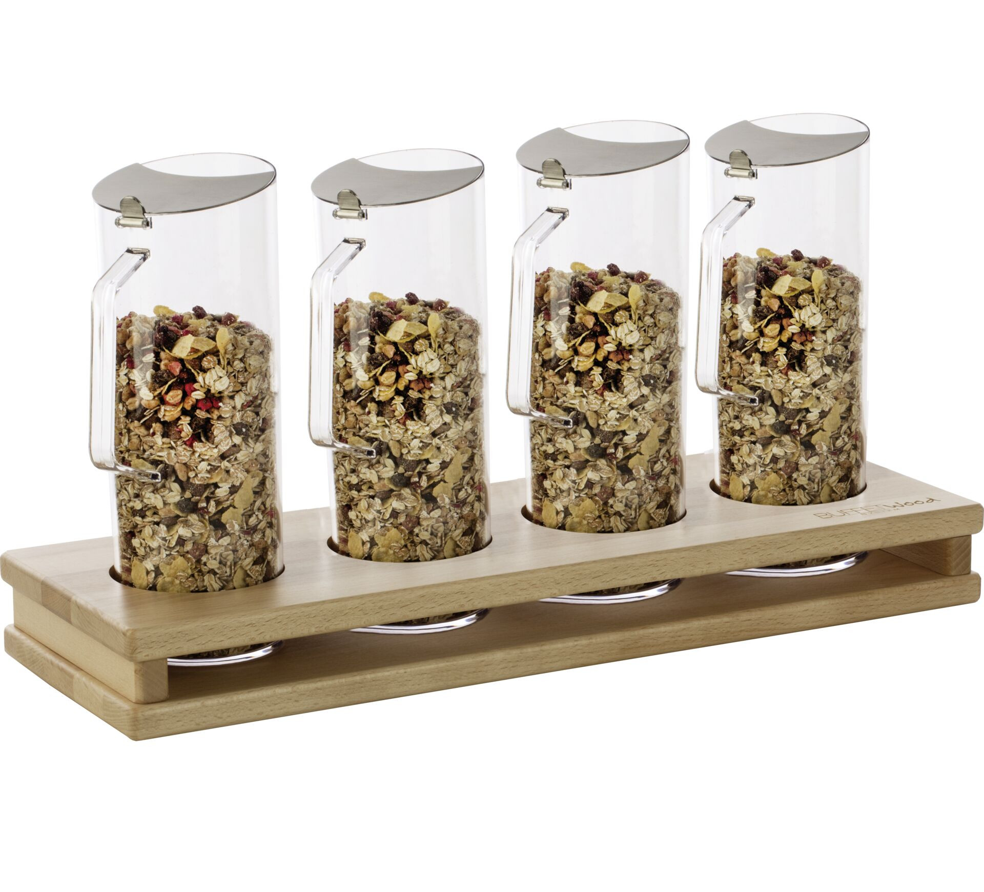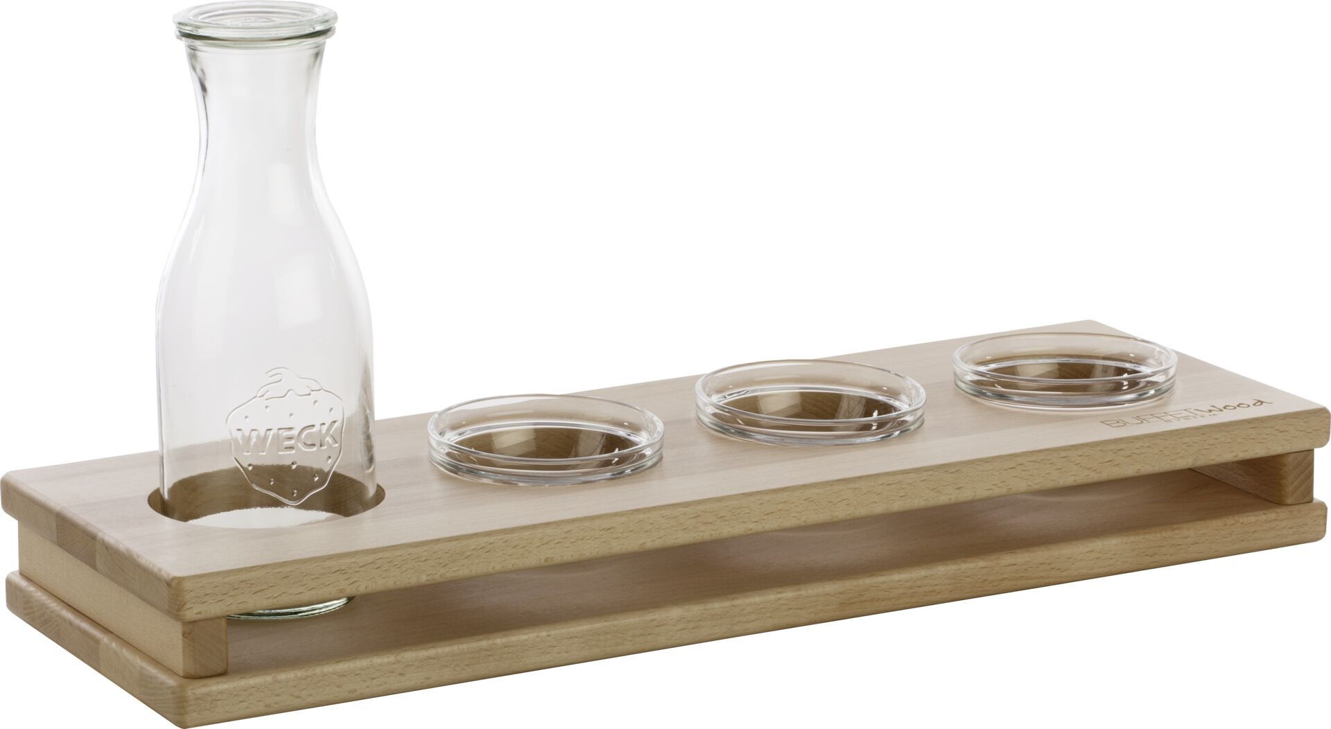 Buche. Passend zu Buffetsystem "Wood". Ecken abgerundet. Mit Gummifüßchen. Plattenstärke: 2 cm.