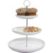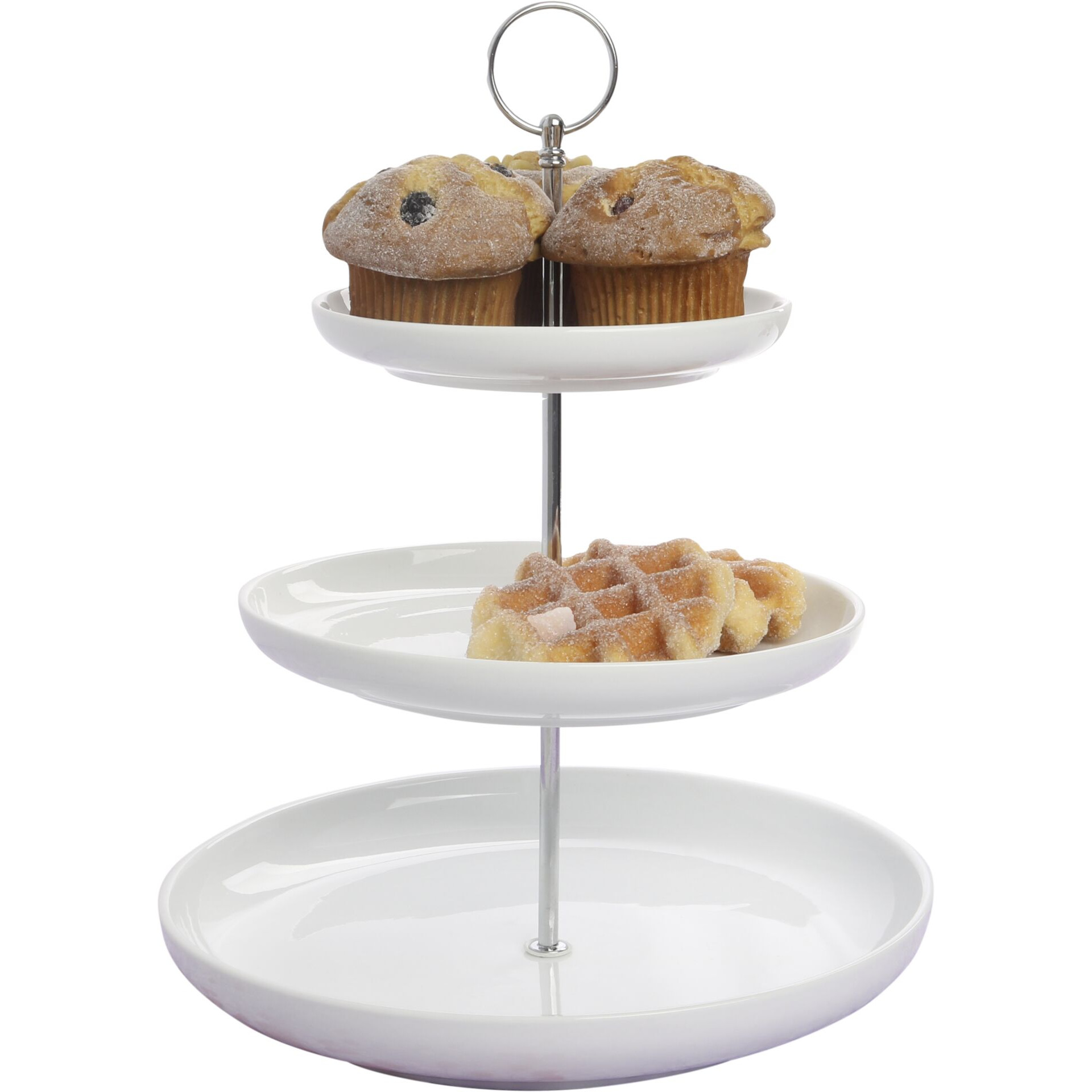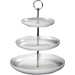 ØxH in cm: 35x27,5 Porzellan, Edelstahl Oberfläche verchromt. Ø Etagen (27,5 cm, 21,5 cm, 16,5 cm).