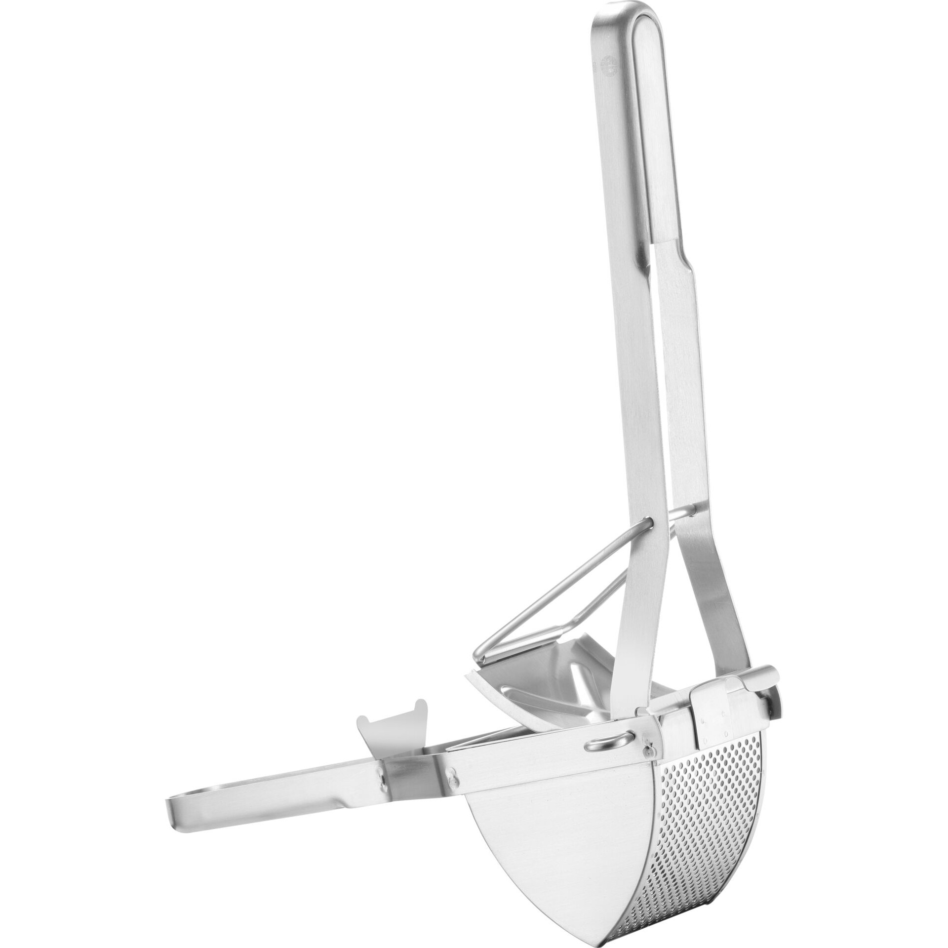 Kartoffelpresse aus Edelstahl. Spülmaschinengeeignet. Maße: 31,9x11,4x11,3cm.