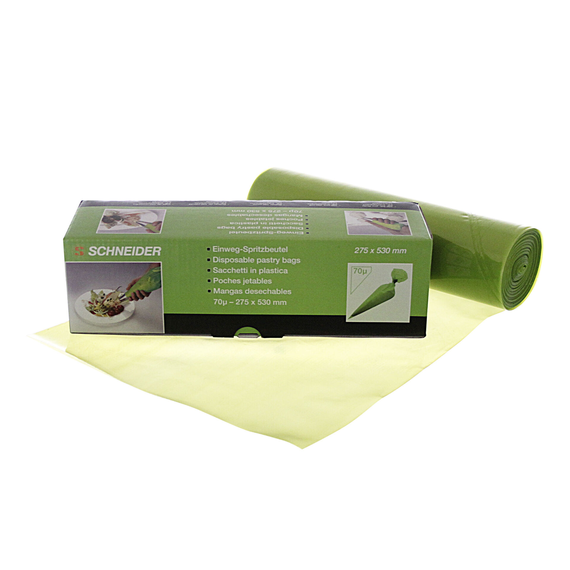 Polyethylen, grün. 70 my. Geschlossene Spitze. Für Lebensmittel im Temperaturbereich von 40°C, Dauer 24 Std. Im 100er Pack. LxB in cm: 35x19,5