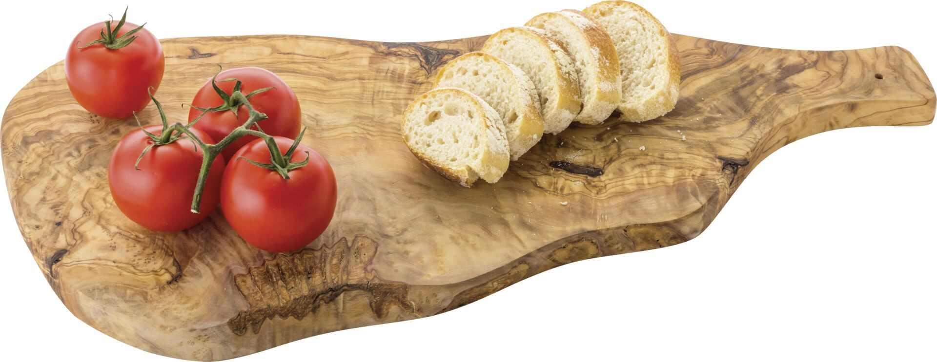 Olivenholz. Griff ca. 9x6 cm. Mit Olivenöl eingelassen. Durch Dichte und Härte des Holzes für den täglichen Gebrauch schnittunempfindlich, jedes Exemplar ein Unikat. Maße ca.