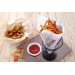 Stahl, schwarz beschichtet. Für Pommes- und andere Snacktüten. Mit Saucenhalterung, geeignet für Petitschalen Ø7,5cm. Spülmaschinengeeignet.